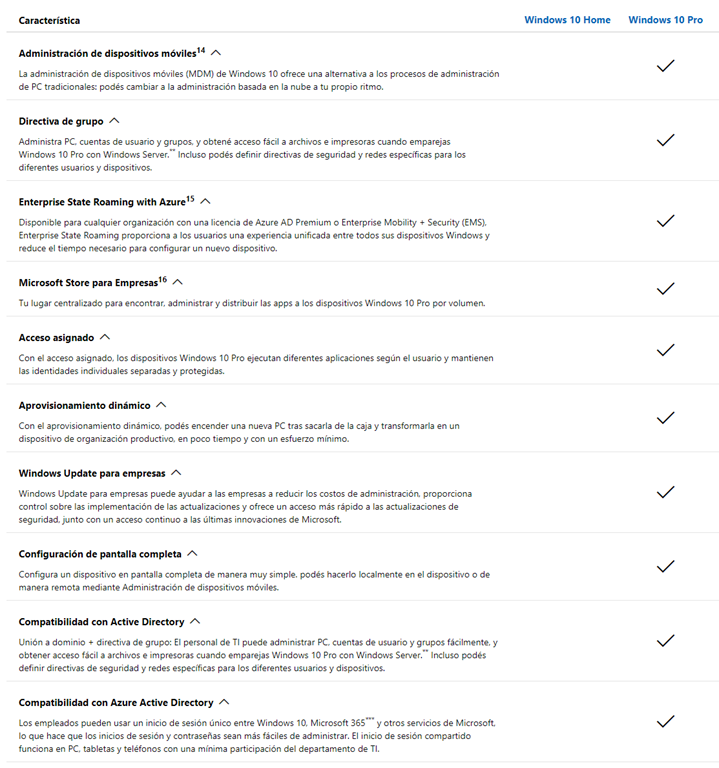 Entonces vamos a ver algunas de las diferencias entre las versiones que nos ayudaran a tomar la mejor decision y ver si debemos actualizar a Windows 10 Pro