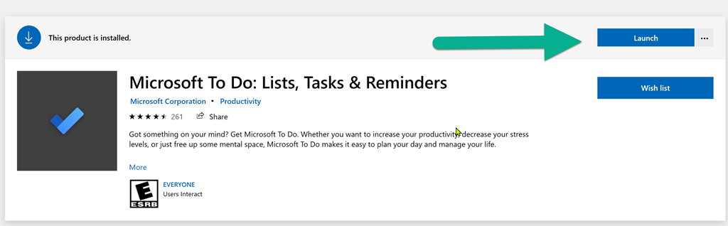 La descarga e instalación es automática, y solo tarda un par de minutos. Cuando termine, aparecerá un texto indicando que “este producto está instalado” y el botón Iniciar, que debes pulsar para abrir Microsoft To Do o desde el menú de Inicio de Windows.