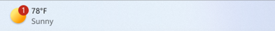 Estamos comenzando a implementar contenido de Widgets aún más dinámico en su barra de tareas con insignias de notificación para Widgets. A continuación se muestra un ejemplo de una insignia de notificación para Widgets.