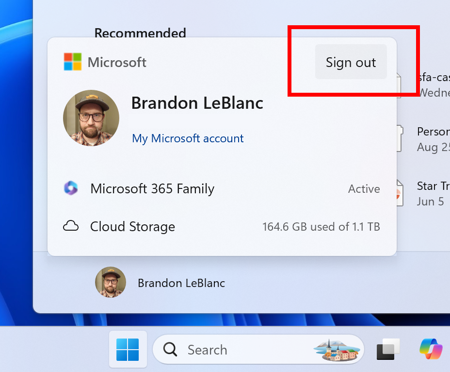 nuevo administrador de cuentas en el menú Inicio , haciendo que la opción de cerrar sesión sea directamente visible y agregando una lista de usuarios que iniciaron sesión en “…” para que sea más rápido cambiar de cuenta.