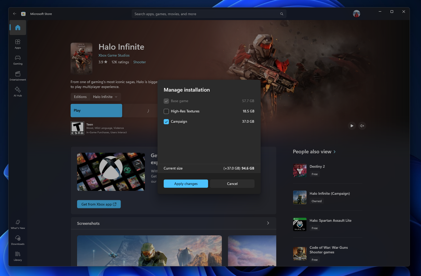 Mejoramos las opciones de instalación de juegos: Incorporamos una nueva función que permite instalar componentes individuales para algunos juegos. Por ejemplo, Call of Duty y Halo permiten instalar (o no) texturas de alta resolución o la campaña. Esto te da un mayor control sobre tu experiencia de juego y el tamaño de instalación de tus juegos.