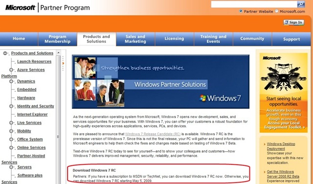 Esta confirmado, en el sitio de Partners de Microsoft sobre Windows 7, salió publicado que a versión RC estara disponible los primeros días de mayo.