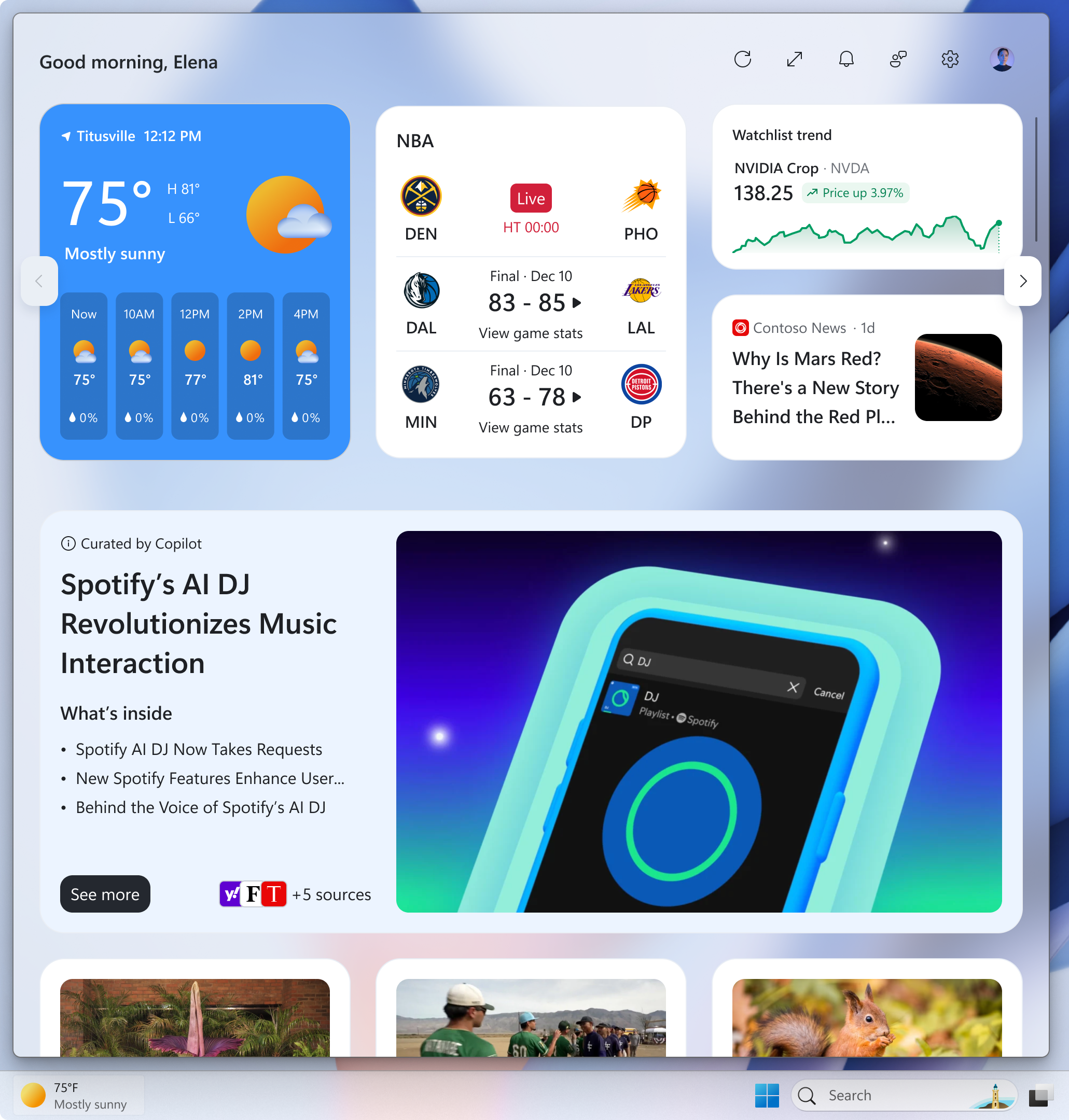 Estamos probando una nueva experiencia visual para el panel de widgets, con un feed más organizado, personalizado y atractivo. Además, incorporamos historias seleccionadas por Copilot. Estas facilitan una visión multifacética de un mismo tema, conectando resúmenes, vídeos e imágenes de editores premium de MSN de confianza. Algunas funciones, como fijar y ocultar, aún están en desarrollo. Explora esta experiencia y comparte tus comentarios para seguir desarrollándola.