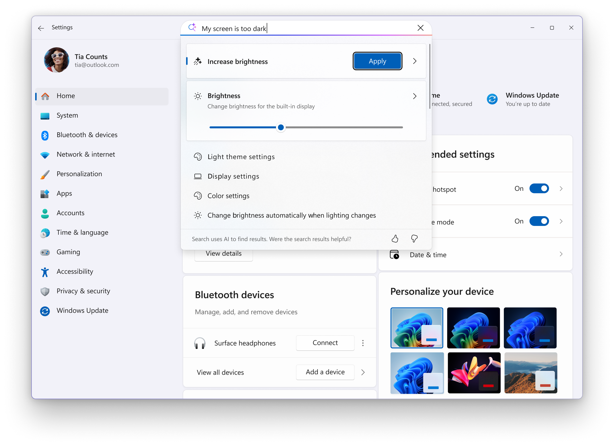- Introducimos una nueva configuración de “Tiempo de espera antes de actuar” en el dictado por voz, que permite a los usuarios configurar el tiempo de espera antes de ejecutar un comando de voz. Esto ofrece mayor flexibilidad a usuarios con diferentes patrones de habla, lo que permite un reconocimiento más preciso, ya sea que hablen despacio o rápido. (Actualización: Esta función se está implementando para todos los ordenadores de escritorio, no solo para PC con Copilot+).