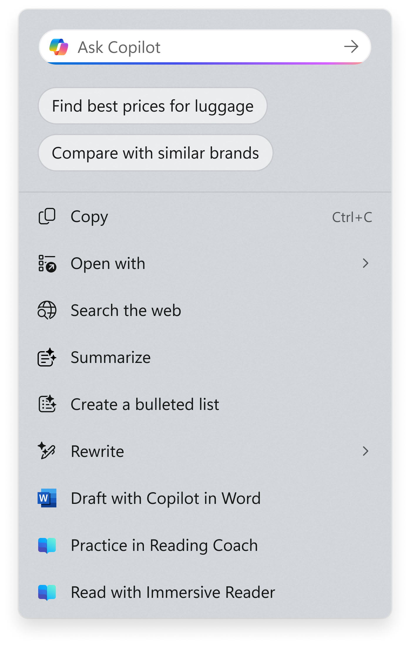 - Etiquetas de acción nuevas y populares: las etiquetas de acción nuevas y populares en el menú contextual de Click to Do están diseñadas para ayudarlo a descubrir nuestras acciones impulsadas por IA más nuevas y populares disponibles para usar.