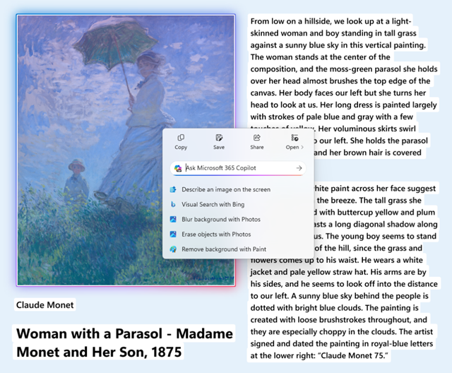- El menú contextual de Click to Do se está actualizando con un diseño optimizado , lo que facilita encontrar lo que necesitas. Ahora, podrás acceder fácilmente a acciones de uso frecuente como Copiar, Guardar, Compartir y Abrir directamente desde el menú contextual.