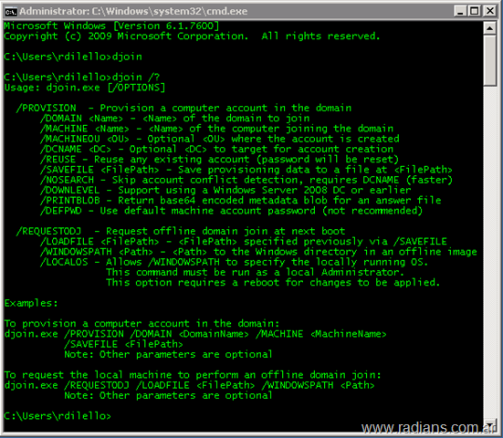 Ahora también, podemos automatizar la unión de un equipo de Windows 7 a un dominio durante la implementación de un archivo XML. El equipo de destino puede estar fuera de línea durante el proceso de implementación, por medio de la utilización del comando djoin.exe (Offline Domain Join feature).
