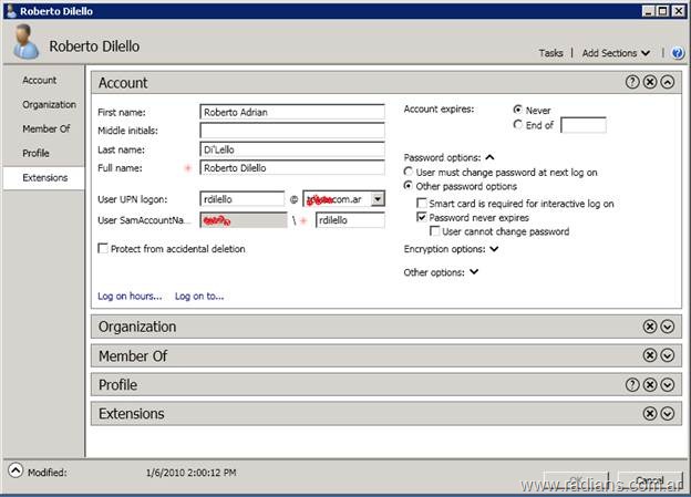 Si seleccionamos un usuario también cambia el look & feel de como veníamos acostumbrados. Ahora tenemos varias solapas las cuales se pueden cerrar o abrir de acuerdo a lo que necesitemos ver; he incluso nos muestra la fecha de cuando fue modificado por ultima vez ese usuario.